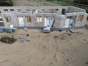 They are using the Isotex “Green” HDIII 44/23 blocks where not only the wood crete is made from “end of life pallets” like all the Isotex blocks, but the insulation is also made from 100% recycled material in a biomass plant. They are also installing the latest Mechanical Ventilation with Heat Recovery (MVHR) system as well as a battery grid system for the community. These will be some of the most energy efficient and eco-friendly builds in the UK!