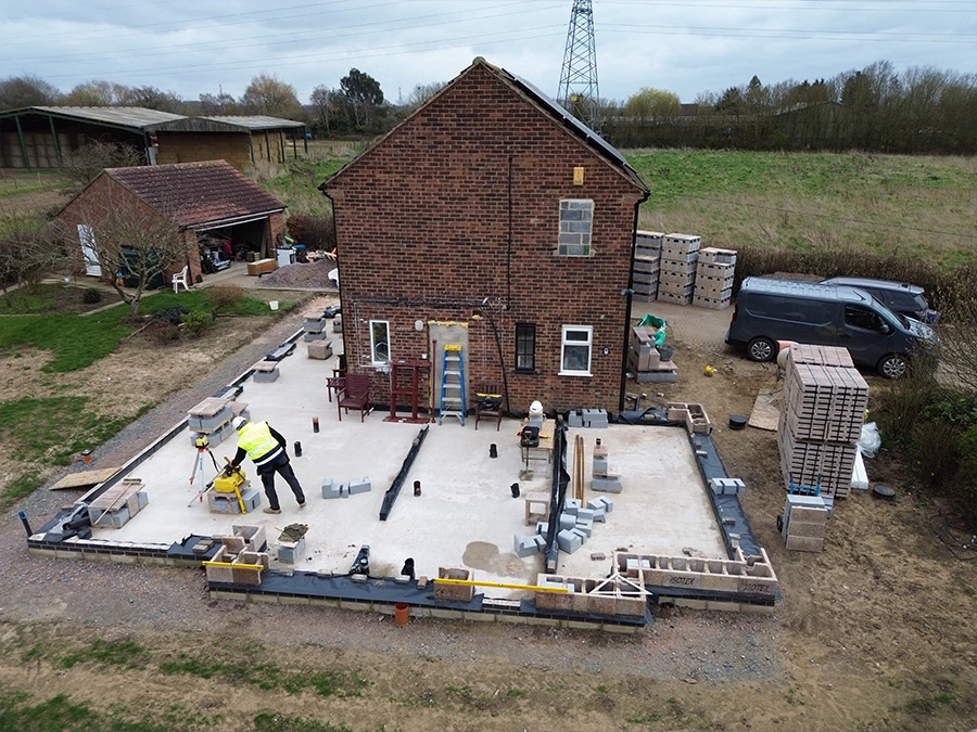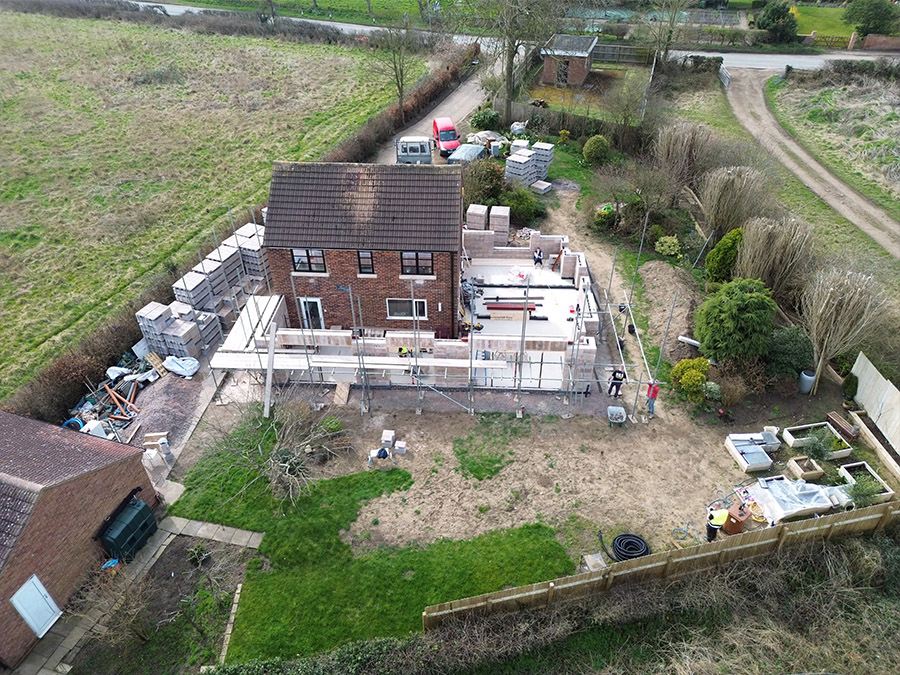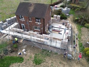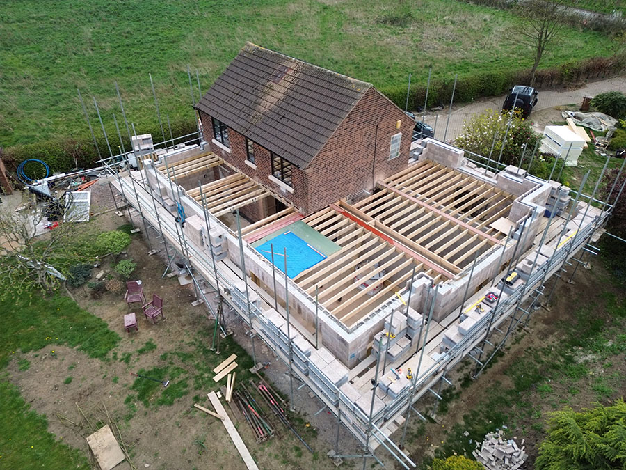 Sasha Laverick decided to build this large extension using the Isotex HDIII 38/17 blocks for the external walls and the Isotex 100mm blocks for the internal walls upstairs.